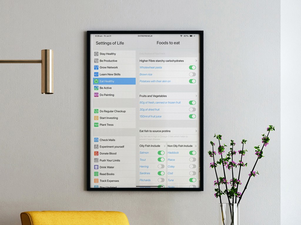 At Ayras Studio™ Poster Design Department we crazy folks really love to create UI based posters. So, one of the team member Mr. Tariqul came up with the idea of this poster. One day an afternoon, he came and said "Hey Guys! What if I am a health concious person and I want my diet chart to be as a poster that will look good and make sense? Everyone was thinking of their own ideas on how to solve it. But after sometime Tariqul said let's turn the settings screen of Ipad to Life's Setting" And this poster was created. We loved how it came out as a final piece.